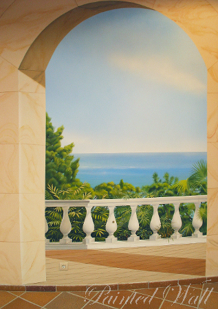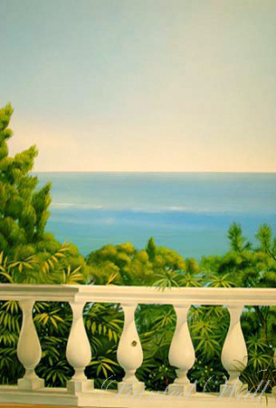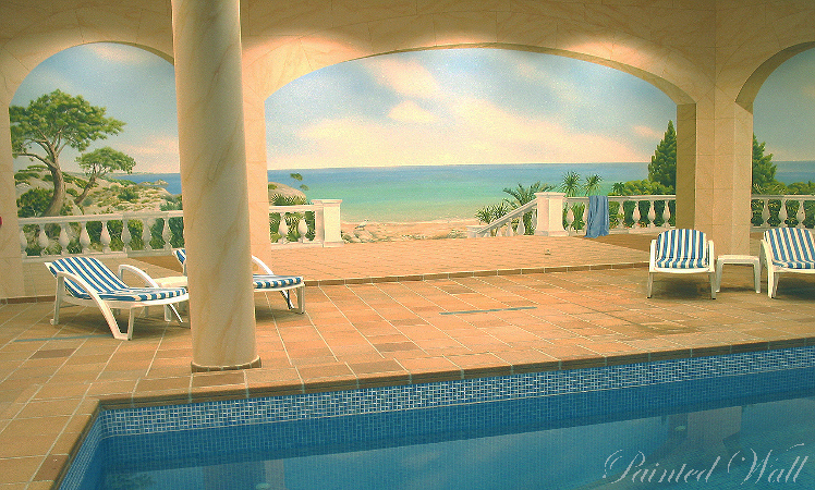 Auf der Sonneninsel darf auch ein Indoor- Schwimmbad für kühlere Tage nicht fehlen. Eine große ,umfassende Gestaltung des Schwimmbades mit Wandmalerei wurde beschlossen. Unsere Illusionsmalerei zeigt die“ Costa de Blanes“ vor 50 Jahren, als es auf Mallorca noch ein wenig ruhiger zuging.