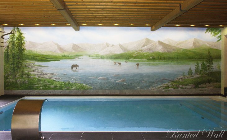 Da die Auftraggeber Alaska sehr lieben, wurde - ihrem Wunsch gemäß - ein großes Wandbild mit diesem Thema gemalt.