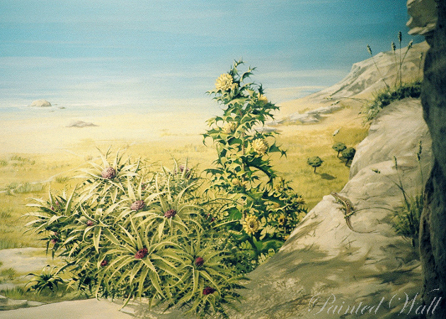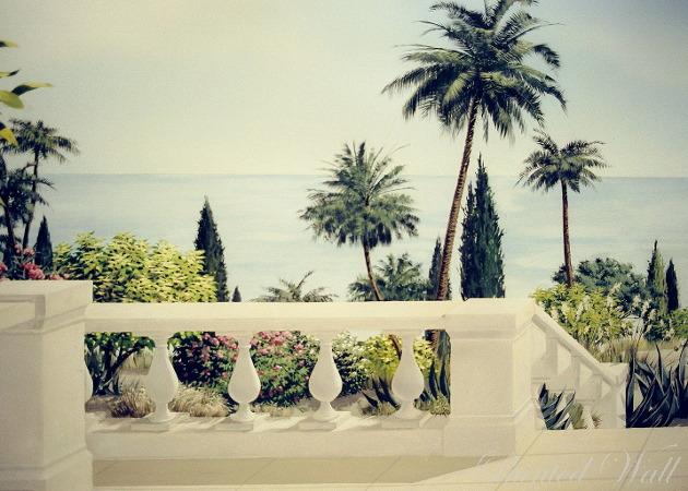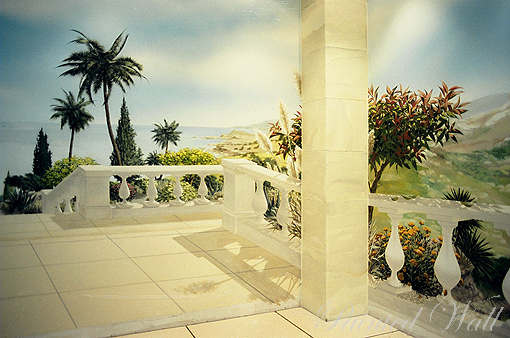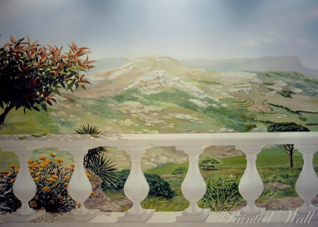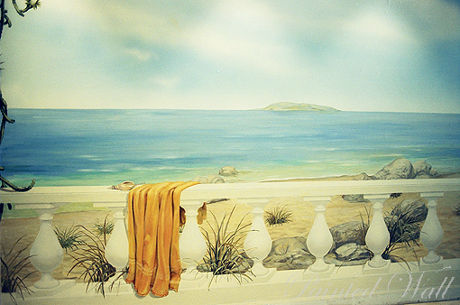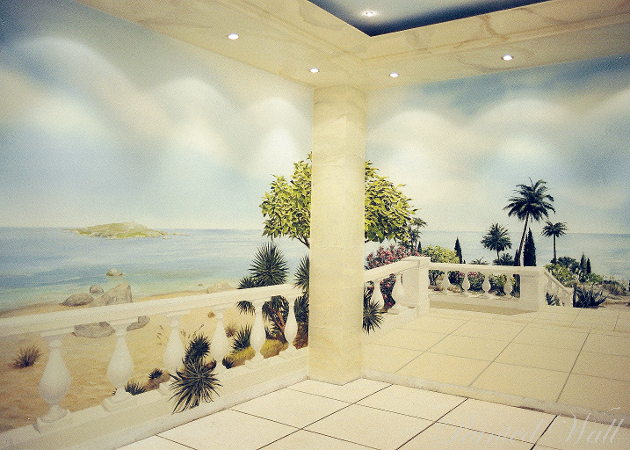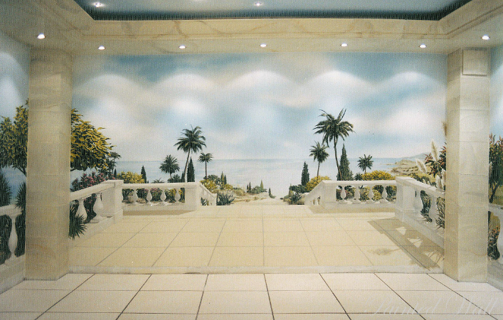 Diese Räumlichkeiten in einem privaten Wellnessbereich erfuhren eine Raumerweiterung durch mediterrane Wandmalerei.