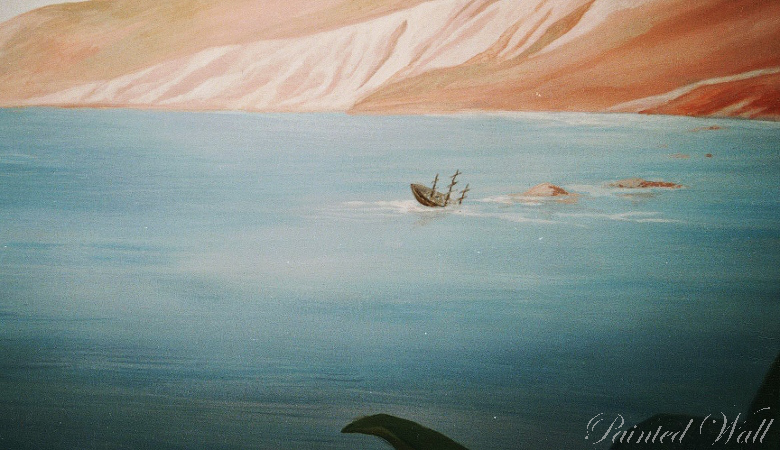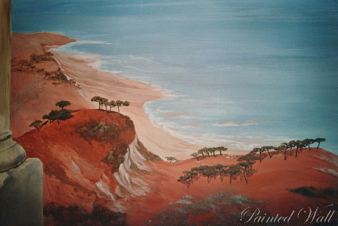 In dieser Villa in Südspanien gestalteten wir den Whirlpoolraum in einer Küstenlandschaft im Surrealismus.