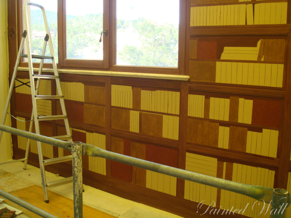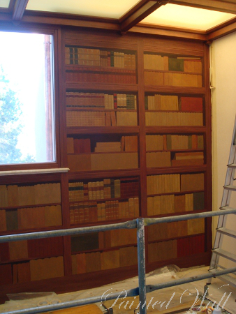 Über 1300 Buchrücken malte ich, um eine klassische Bibliothek in Tromple l'oeil Technik - also täuschend echt - entstehen zu lassen.