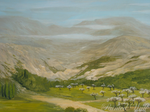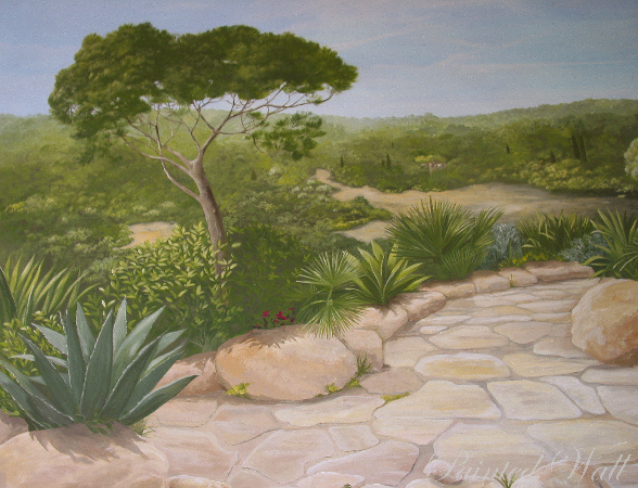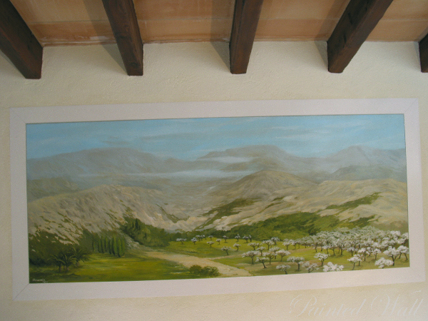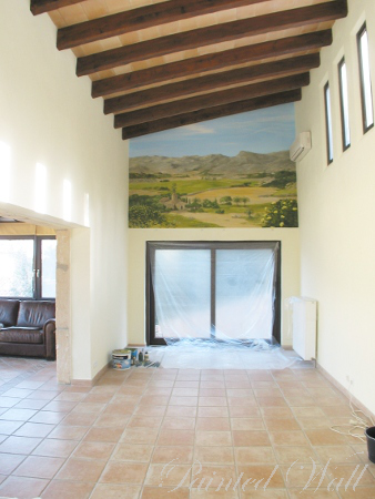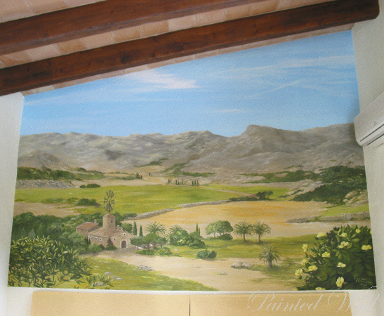 Ebenfalls auf Mallorca entstand dieses Wandbild in einer Finca. Die hohen Räume bieten viele Möglichkeiten der Gestaltung. In diesem Fall ein Weg in die Ferne.